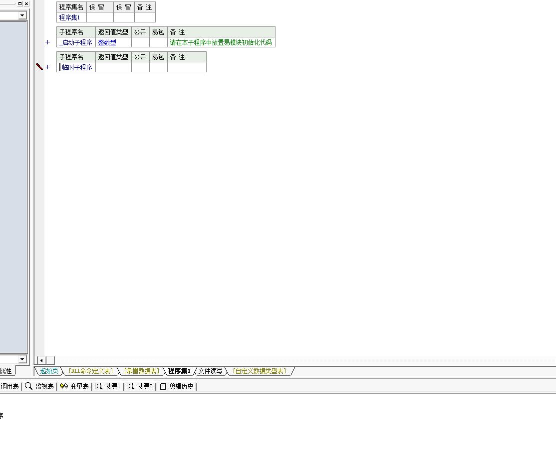 子程序1,打开文件,生成空文件,生成重复字节文件,移到文件首,移到文件尾,移动读写位置,取读写位置,关闭文件,取文件长度,写出字节集,是否在文件尾,取错误信息,读入字节集,读入2M字节集,清除文件缓冲区,读入文本,写出文本,写文本行,读入一行,插入字节集,取文件号...