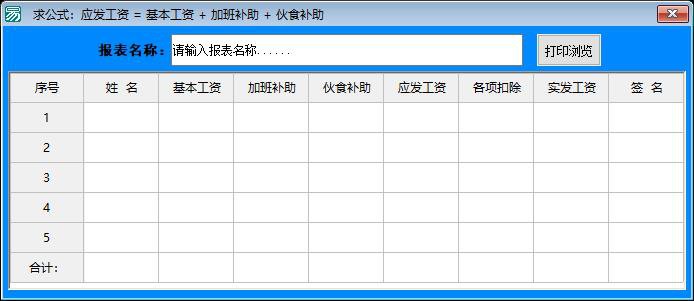 综上所述,该程序是一个功能完善的工资表制作工具,集成了数据录入、自动公式计算、行列统计及打印预览于一体,有效提高了工资核算的效率和准确性。