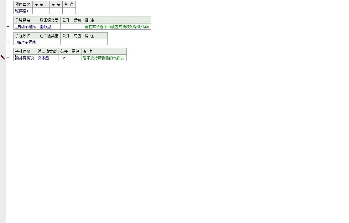 3. 界面交互:程序包含一个简单的窗口界面。当用户单击“按钮 1"时,触发"_按钮 1_被单击”事件。该事件获取“编辑框 1"中的用户输入,调用“合并同类项”子程序进行处理,并将最终结果显示在“标签 1"的标题上。