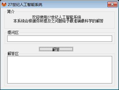 该程序是基于易语言(EPL)开发的一款桌面窗口应用程序,其核心功能是一个带有幽默性质的固定问答演示工具,对外宣称名为"27 世纪人工智能系统 - 山寨版”。通过分析源代码结构、变量定义及事件处理逻辑,可以总结出以下详细的功能与技术实现总结。