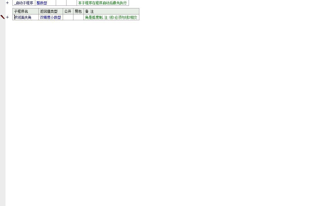 功能说明:该程序是一个用于计算三维空间中一条直线与一个平面之间夹角的数学计算工具。其核心功能由名为“求线面夹角”的子程序实现,该子程序根据用户输入的三个已知角度(单位为弧度):直线与平面内第一条参考线的夹角、直线与平面内第二条参考线的夹角、以及这两条平面内参考线之间的夹角,通过三角函数推导与向量投影原理,严格计算出该直线与所在平面所成的锐角(即线面角)。程序内部采用正弦、余弦、反正切及平方根等基本三角运算,构建几何关系模型,先分解直线在平面坐标系中的分量,再利用余弦定理和比例投影关系求得法向分量与平面投影的比值,最终通过反正切函数反解出线面角的弧度值,并支持外部转换为角度制(如启动子程序中所示,将结果乘以180/π并输出)。程序虽未自动处理钝角转锐角的逻辑(注释中明确说明),但提供了清晰的算法框架和可扩展接口。整个程序结构简洁,无界面交互,定位为底层几何计算模块,适用于工程制图、立体几何教学辅助、CAD插件开发或数学建模中的基础角度求解场景。标题准确反映其实质:一个基于纯数学公式、面向三维几何关系的“直线与平面夹角”专用计算器。