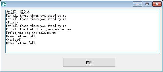 功能说明:该程序是一个文本替换工具,主要功能是通过正则表达式对编辑框中的文本进行替换操作。程序的主要功能集中在“按钮2_被单击”子程序中,该子程序使用了正则表达式类对输入文本进行处理,将特定的字符或模式替换为换行符或其他指定内容。具体来说,程序首先创建一个正则表达式对象,用于匹配特定的字符串(如“\n”),然后使用该正则表达式对编辑框中的内容进行替换。接着,程序再次创建另一个正则表达式对象,用于匹配“