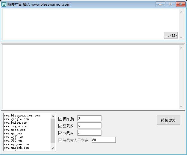 功能说明:该程序是一个面向中文文本处理的广告插入辅助工具,主要用于在用户指定的TXT文本中,按用户设定的位置规则(如换行符、中文逗号“,”、中文句号“。”后)随机、不重复地插入自定义广告语,并支持防重复、间隔控制与热键快捷操作。程序主界面包含文件加载(按钮1触发打开TXT文件)、处理执行(按钮2触发广告插入)、多位置插入开关(三个复选框分别对应回车、逗号、句号后的插入)、广告库输入(编辑框3,支持多行广告,以换行分隔)、各位置插入次数设置(编辑框4/5/6)以及最小文本间隔限制(编辑框7,用于避免在过短的原文片段后插入广告,提升可读性)。核心逻辑由“_分割插入文本”子程序实现:先按指定分隔符(如“。”)将原文切分为数组,再利用“取不重复随机数”类对象,在指定次数内从切分后的片段中随机选取不同位置,向其末尾追加广告语;若勾选“再次插入分割符”,则在插入广告前先补回原分隔符,确保语法连贯。广告来源为用户手动输入的广告池,程序会校验总插入次数是否超过广告总数并给出提示。所有操作支持F2键快速加载文件、F3键一键执行处理,提升效率。程序无后台服务或网络功能,纯本地运行,安全轻量,适用于自媒体文案润色、SEO内容生成、营销话术批量加工等场景。