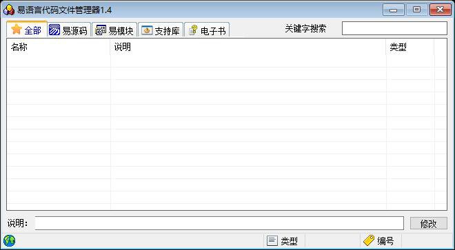 功能说明:该程序是一个面向易语言开发者的本地资源管理与浏览工具,核心功能是基于本地Access数据库(e.mdb)对各类易语言相关资源文件进行结构化存储、分类展示与交互操作。程序启动时自动检查并初始化数据库文件,连接失败则提示退出;通过读取注册表项(HKEY_CURRENT_USER\Software\FlySky\E\Install\Path)获取用户配置的资源安装路径,用于后续定位和显示关联目录。主界面以“超级列表框1”为核心控件,按“文件编号”降序动态加载数据库中[文件]数据表的全部记录,并依据字段“类型”(如“易源码”“易模块”“支持库”“电子书”)及文件后缀(如.fne、.ec、.e、.chm、.lib等)进行智能图标映射与分类渲染:例如“.fne”支持库显示为图标0,“易模块”(.ec)为图标1,“易源码”(.e)为图标2,“电子书”(.chm)为图标3,“其他支持库”(.lib)为图标5,实现视觉化区分。每条记录在列表中完整显示文件名、物理路径、说明、类型和编号五列信息。选中某一项时,状态栏实时同步显示路径、类型和编号,编辑框2同步显示说明内容;右键触发操作菜单前,根据当前选中项的图标类型动态启用/禁用功能按钮(如“打开文件”仅对.e/.chm文件启用,“Lib”和“Static”标签页可视性依类型切换),体现精准的上下文感知控制。搜索功能由“高级选择夹1”(含多个分类子夹)与“编辑框1”协同实现:未选分类时执行全表模糊搜索(路径或说明含关键词),选定分类(如“易模块”)后则追加类型条件,生成带WHERE类型的SQL查询并刷新列表。此外,程序具备基础的资源操作预备逻辑(如“打开文件夹”“复制到”“删除选中”等按钮的禁用/启用状态管理),虽未在代码中展开具体实现细节,但已构建完整的UI响应框架。综上,本程序并非通用文件管理器,而是专为易语言生态设计的轻量级本地资源索引浏览器,聚焦于帮助开发者快速定位、查看和管理已入库的易语言项目源码、封装模块、静态/动态支持库(.fne/.lib)、技术文档(CHM电子书)等资产,本质是一个集成数据库访问、分类展示、条件检索与环境路径联动的IDE辅助型桌面工具。