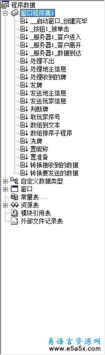系统结构:取牌代码,转换要发送的数据,初始化客户数据,处理不出子程序1,打牌子程序,发送得分子程序,显示下家牌子程序,显示上家牌子程序,取剩牌,取上次出牌的张数,显示牌,取出牌的玩家,处理地主信息,取地主昵称,求图片号,确定动作,取动作,处理桌面,显示我的牌,数组排序子程序,取玩家牌的张数,接收牌,取得分子程序,取地主,取玩家昵称,转换成服务器数据,处理玩家信息,显示玩家标签昵称,发送地主信息,比大小,取三顺中的低位,取双顺中的低位,取四带二中的四,取三带一中的三,牌重新排序,判断牌,把牌代牌码翻译成文字,整个程序初始化,数组到文本,洗牌,发牌,处理不出,处理收到的牌,处理地主信息,发送地主信息,取玩家序号,发送玩家信息,置准备,转换要发送的数据,置昵称,转换接收到的数据,判断牌,数组排序子程序,